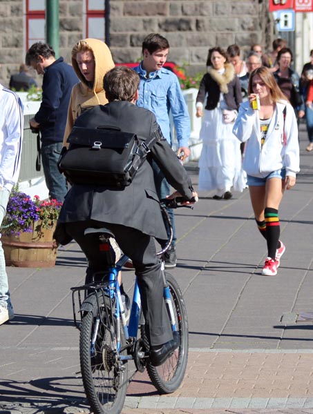 Ljósmyndari okkar kíkti í bæinn með myndavélina og smellti af nokkrum myndum. Það var engin vöntun á fólki sem notaði reiðhjólið sem sitt farartæki.